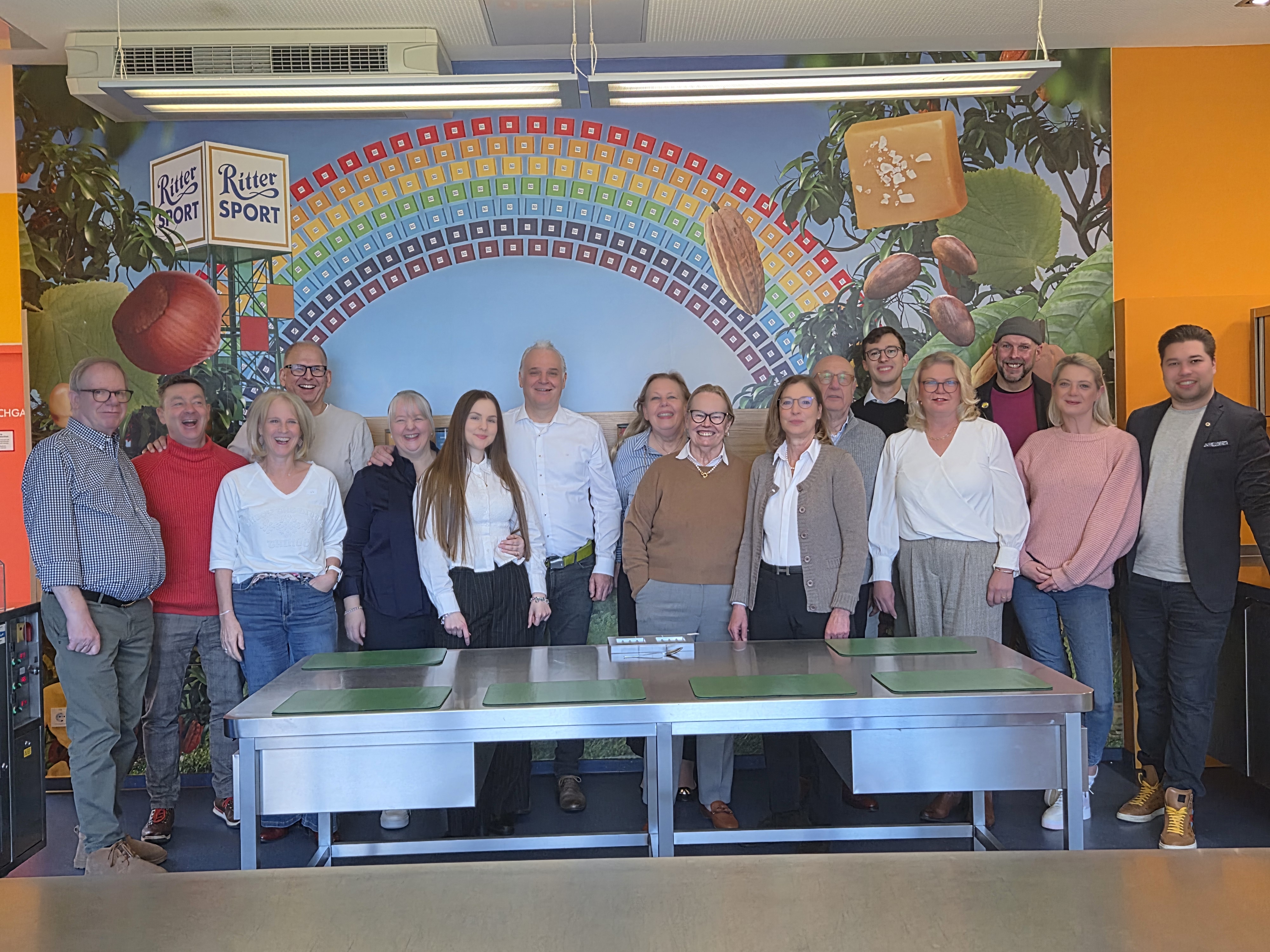 Ein besonderes Erlebnis erwartete die Mitglieder des LC Netzwerk Süd bei ihrer Clubveranstaltung in Waldenbuch: Gemeinsam besuchte man die Erlebniswelt von Ritter Sport und wurde selbst kreativ. Höhepunkt des Tages war die gemeinsame „Produktion“ einer eigenen 100-Gramm-Tafel Schokolade, die jede Teilnehmerin und jeder Teilnehmer individuell gestalten konnte.